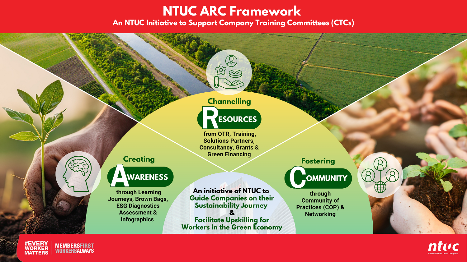 The ARC Framework, designed by NTUC, allows NTUC's network of companies to tap on resources that can help them on their sustainability journey.